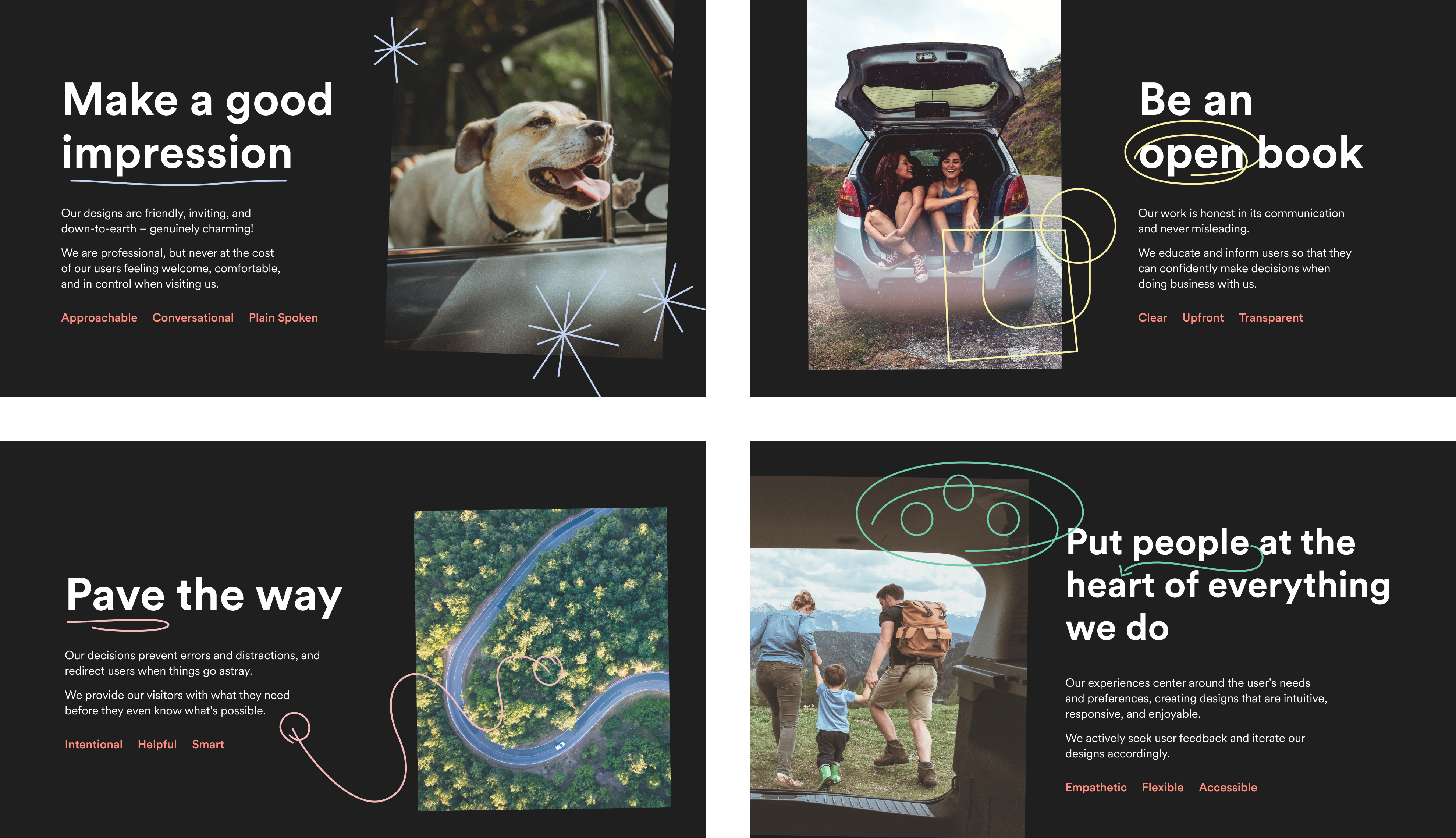This seems obvious in retrospect, but it opened our eyes to nuance required when articulating these characteristics. From our perspective, there was no way to thread this needle except by being extremely thoughtful with our language and packaging of these principles, which is what determined the subsequent steps.